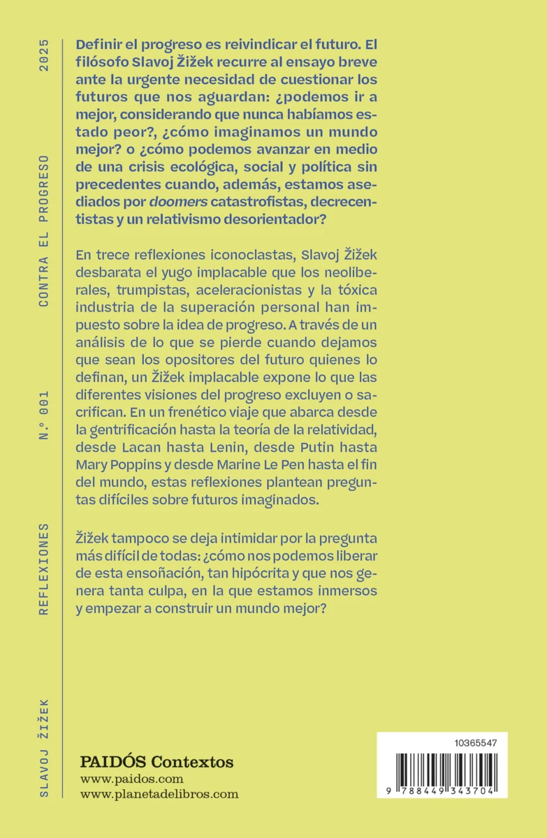 A través de una serie de ensayos que abordan temas desde la política contemporánea hasta la tecnología, Žižek argumenta que el progreso, tal como lo entendemos hoy, oculta sacrificios, opresiones y contradicciones que son sistemáticamente ignoradas.