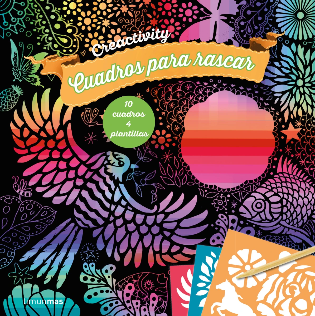 Rasca las zonas de carboncillo negro siguiendo las plantillas y aparecerán animales fantásticos. ¡Una nueva manera de dibujar y disfrutar de tu creatividad!