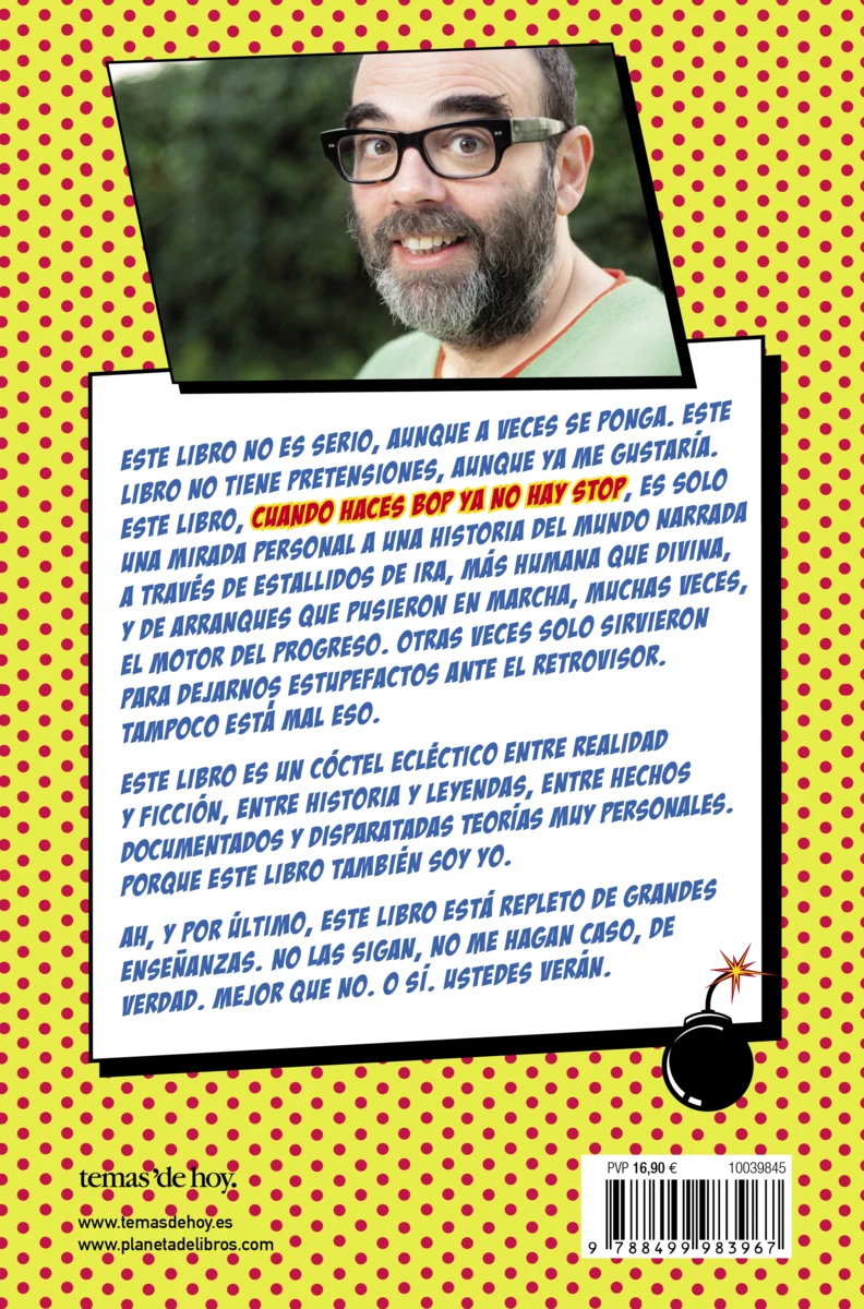 Este libro no es serio, aunque a veces se ponga. Este libro no tiene pretensiones, aunque ya me gustaría. Este libro, Cuando haces Bop ya no hay stop, es SOLO una mirada personal a una historia del mundo narrada a través de estallidos de ira, más humana que divina, y de arranques que pusieron en marcha, muchas veces, el...