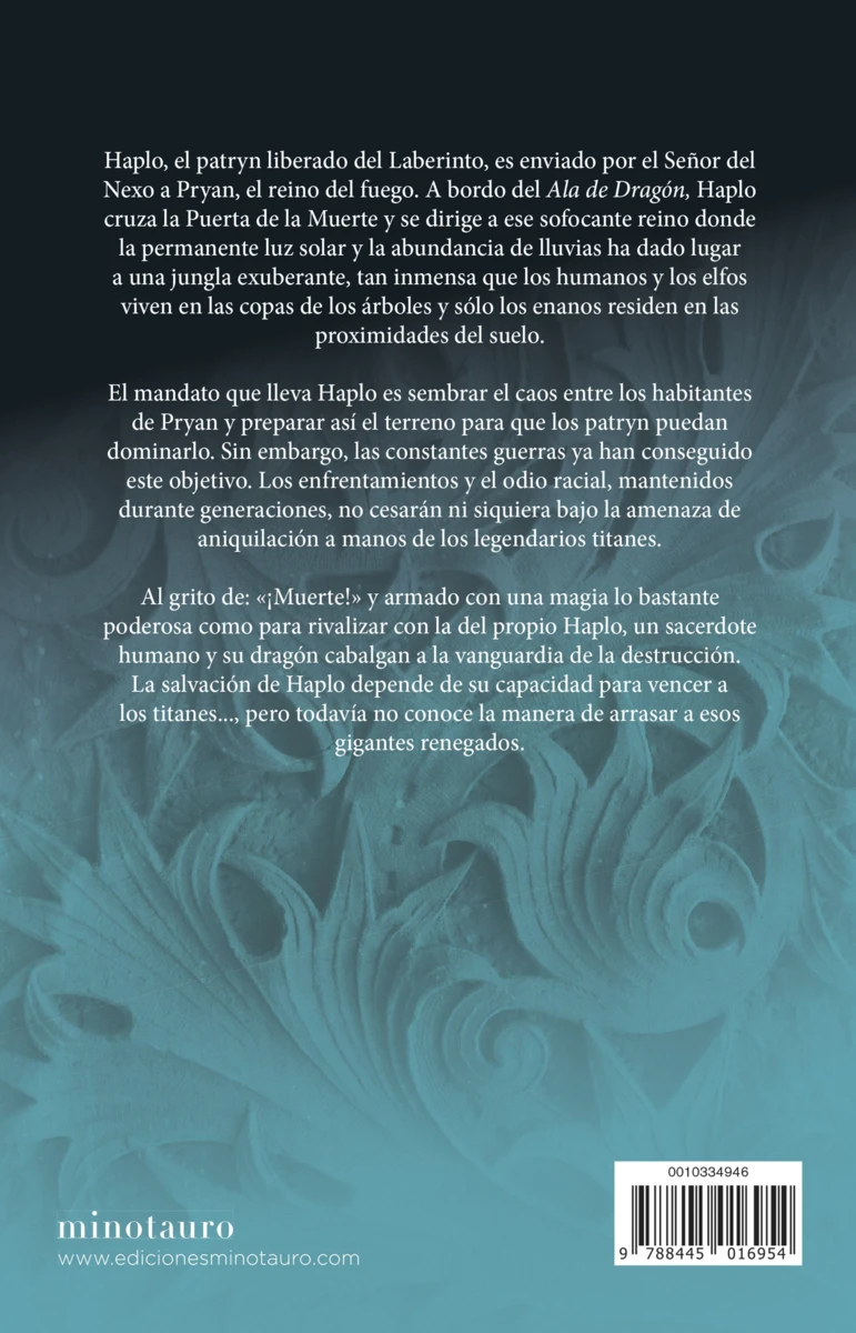 Haplo, el patryn liberado del Laberinto, es enviado por el Señor del Nexo a Pryan, el reino del fuego. A bordo del Ala de Dragón, Haplo cruza la Puerta de la Muerte y se dirige a ese sofocante reino donde la permanente luz solar y la abundancia de lluvias ha dado lugar a una jungla exuberante, tan inmensa que los humanos y los elfos viven en...