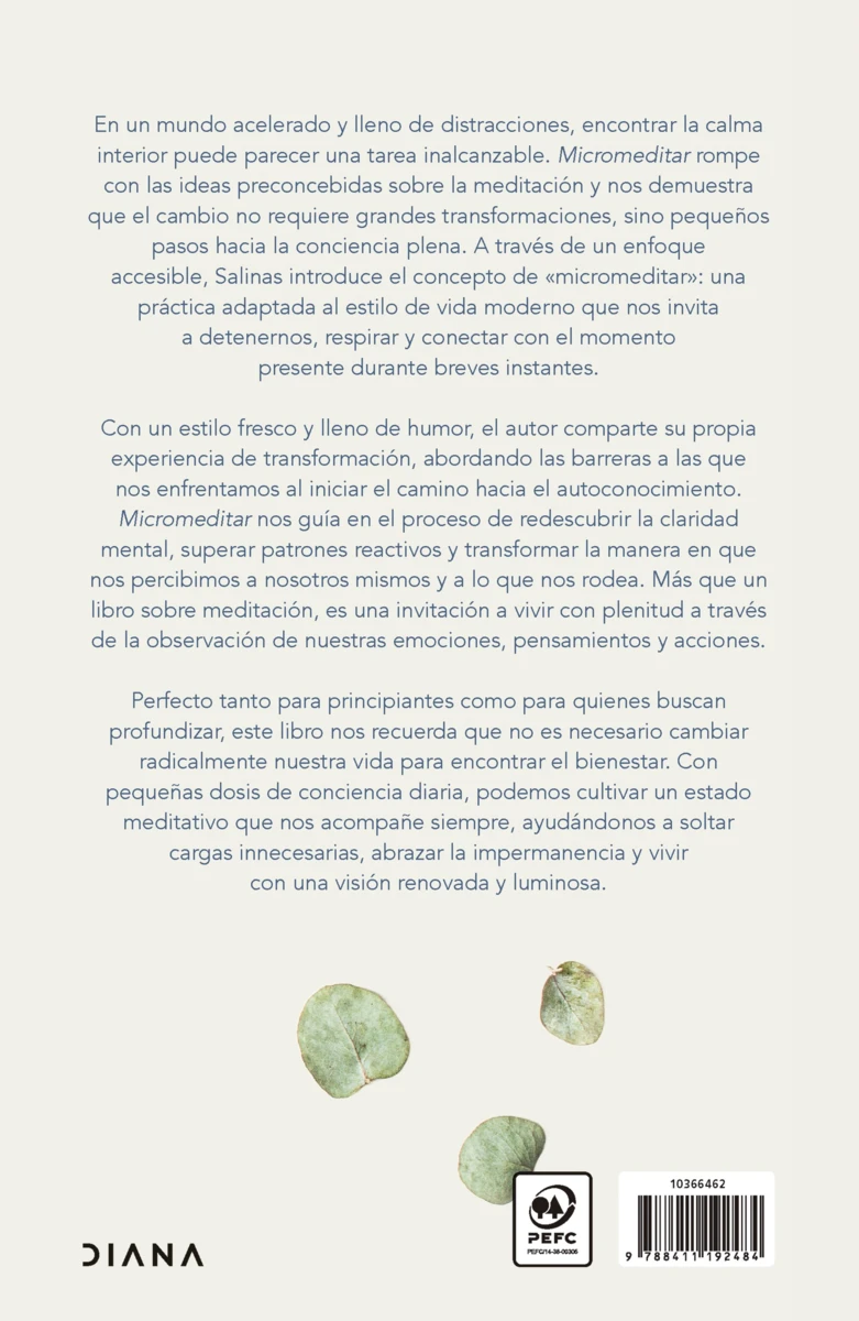 En un mundo acelerado y lleno de distracciones, encontrar la calma interior puede parecer una tarea inalcanzable. Micromeditar rompe con las ideas preconcebidas sobre la meditación y nos demuestra que el cambio no requiere grandes transformaciones, sino pequeños pasos hacia la conciencia plena....