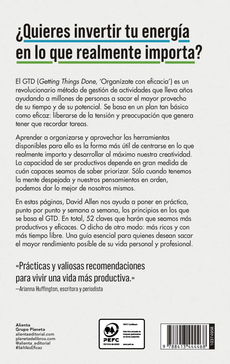 El GTD (Getting Things Done, ‘Organízate con eficacia’) es un revolucionario método de gestión de actividades que lleva años ayudando a millones de personas a sacar el máximo provecho de su tiempo y de su potencial. Se basa en un plan tan básico como eficaz: liberarse de la tensión y preocupación que genera tener que recordar tareas.
