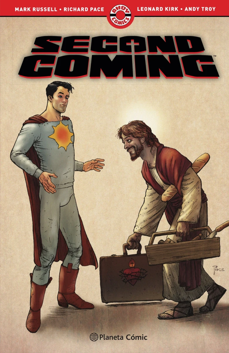 El libro del que habla todo el mundo, por el galardonado guionista Mark Russell (Snagglepuss, The Flintstones) y el artista Richard Pace (Pitt, New Warriors). Dios ordena al superhéroe más poderoso de la Tierra, Sunstar, que acepte a Jesús como compañero de piso y le enseñe cómo usar el poder más contundentemente.